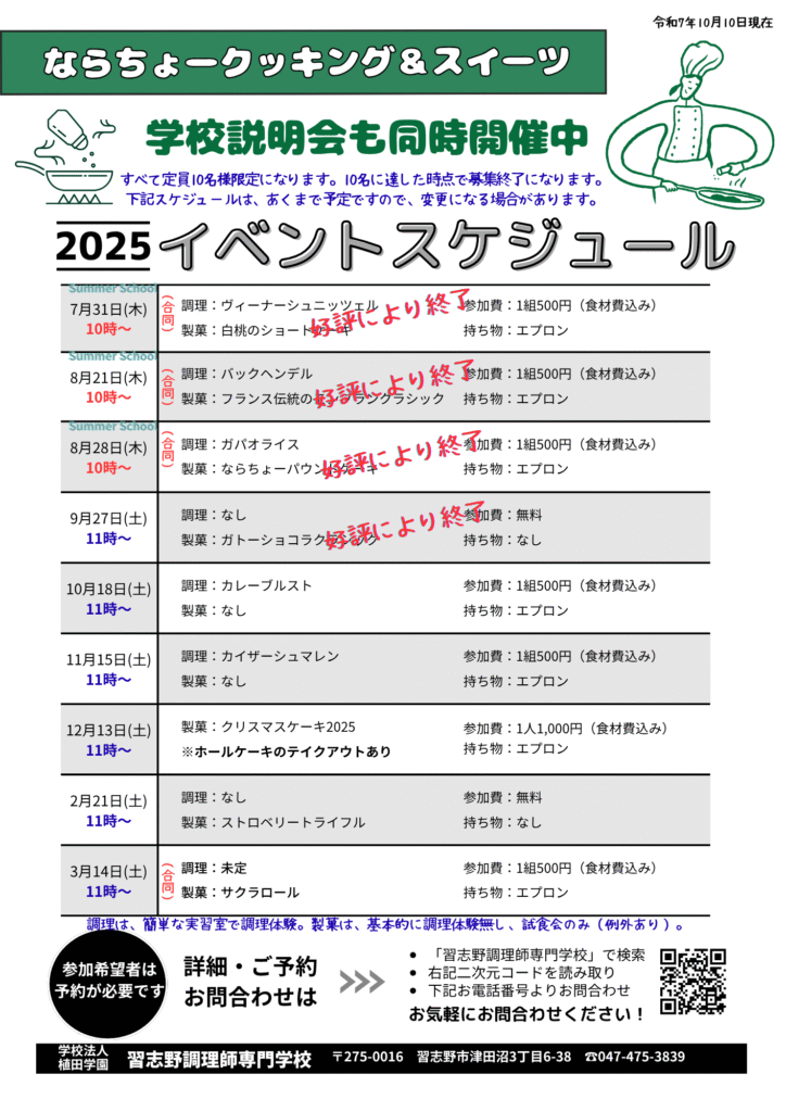 大好評につき、「ならちょークッキング」の年間スケジュールを発表します。