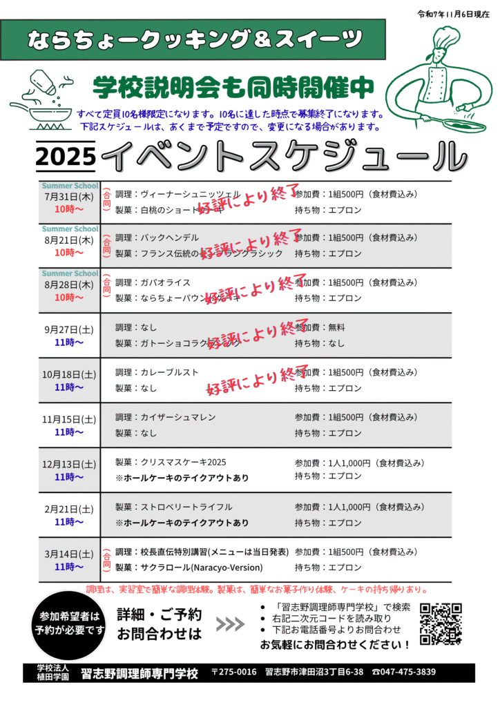 大好評につき、「ならちょークッキング」の年間スケジュールを発表します。