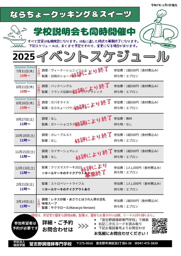 2025ならちょークッキング&スイーツ(12/4更新)