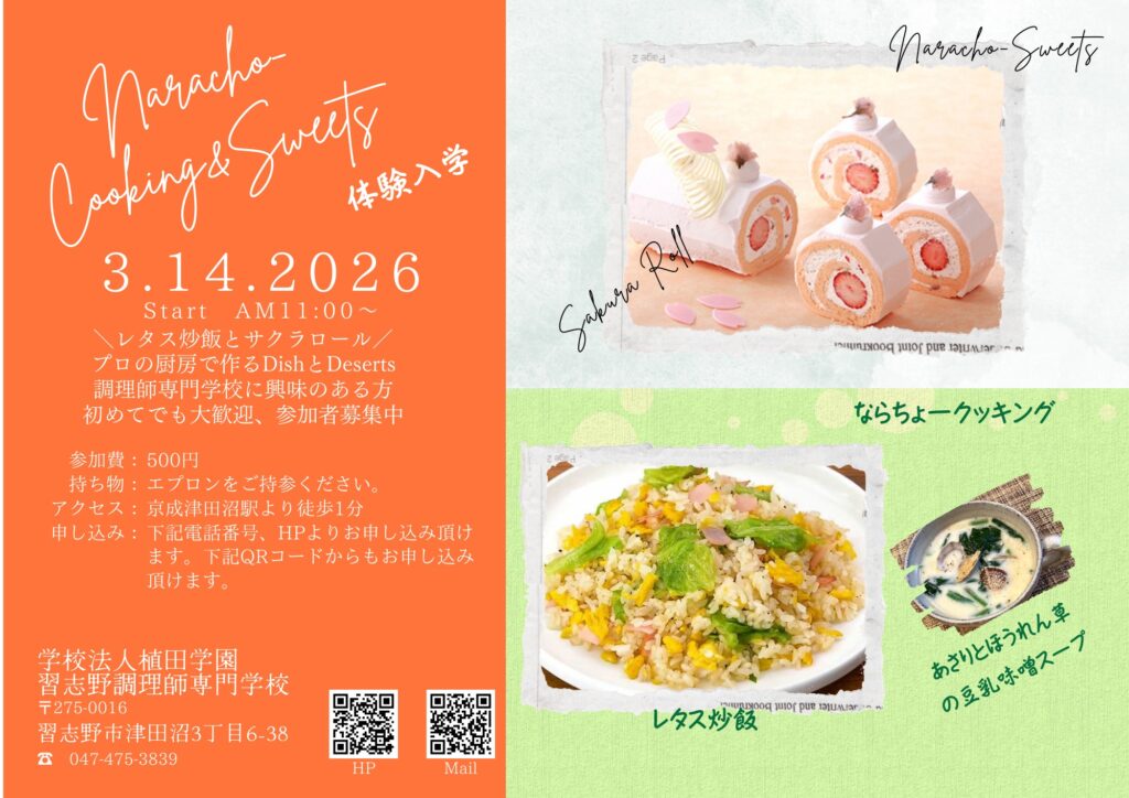 入学体験 令和8年3月14日(土)ならちょークッキング開催決定