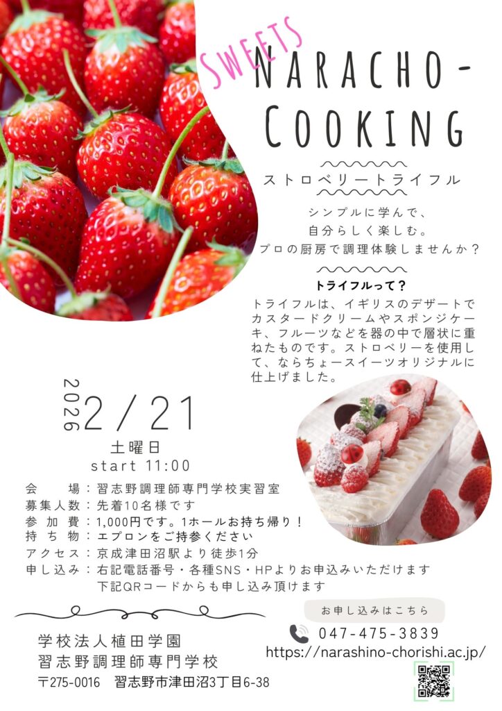 体験入学 令和8年2月21日(土)ならちょースイーツ開催決定