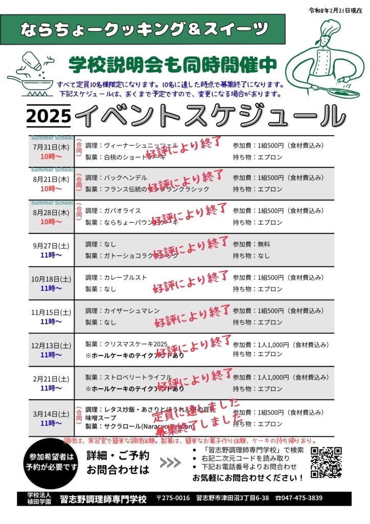 大好評につき、「ならちょークッキング」の年間スケジュールを発表します。